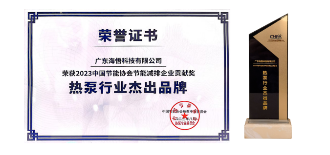在這場千人行業盛宴上,海悟憑借對熱泵技術的篤信和行業難題的突破,贏得了業內專家及客戶的好評。在“2023年中國熱泵年會節能減排企業貢獻獎”的評選活動中,海悟成功榮獲“中國熱泵行業杰出品牌獎”,印證著業界對海悟產品、技術和品牌實力的高度認可。