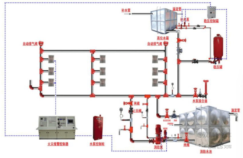 自動噴水滅火系統由灑水噴頭、報警閥組、水流報警裝置(水流指示器或壓力開關)等組件,以及管道、供水設施等組成,能在發生火災時噴水的自動滅火系統。該系統主要用于撲救建筑物初期火災平時處于準工作狀態,當設置場所發生火災時噴頭或報警控制裝置探測火災信號后立即自動啟動噴水滅火,具有安全可靠、經濟實用、滅火成功率高等的優點。