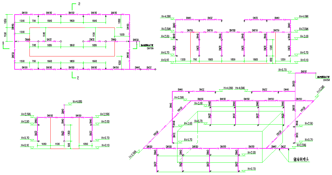 水霧噴頭的平面布置方式可為矩形或菱形。當按矩形布置時,水霧噴頭之間的距離不應大于1.4倍水霧噴頭的水霧錐底圓半徑;當按菱形布置時,水霧噴頭之間的距離不應大于1.7倍水霧噴頭的水霧錐底圓半徑。水霧噴頭實際項目布置實例如下:
