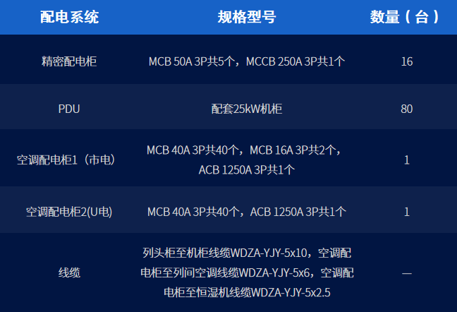 列間級精密空調方案具體新增配電設備明細如下: