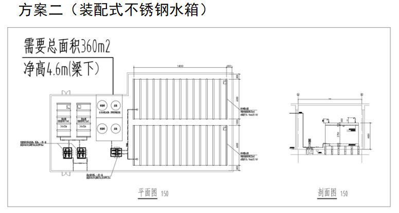 以實際項目為例,室外地下儲存450m³水量,兩種方案比較如下: